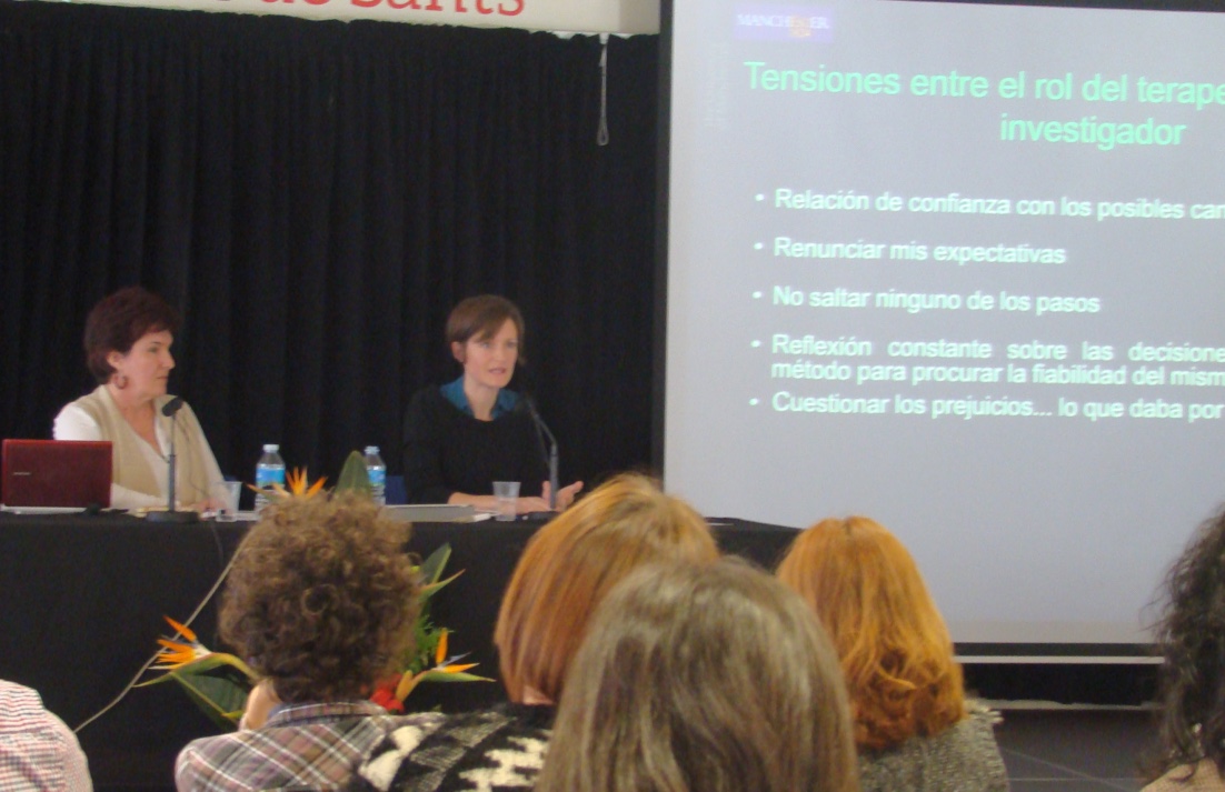 “A la luz de la últimas investigaciones en España”, temática general de este año, conocimos cuatro experiencias desarrolladas en nuestro país, tres del ámbito de la salud, de la mano de Ana Belén Nuñez (Trastornos del Espectro del autismo), Sally Shofield (Parkinson) y Nadia Collette (Cuidados Paliativos) y una del ámbito de la educación (Alumnos con Necesidades Educativas Especiales), de la mano de María Carmen Delgado. Para guiarnos en nuestras andanzas nacionales, contamos con un invitado estrella, Neil Sprinham, arteterapeuta investigador británico. Nos narró el recorrido histórico de la investigación en el Reino Unido y sobre todo, nos deleitó presentándonos nuevos enfoques metodológicos para generar evidencia sobre los mecanismos de acción de nuestras intervenciones. Puso el énfasis en la necesidad de producir teoría (hipótesis) a partir de nuestra práctica y de luego comprobarla o refutarla, poniéndola en práctica. Un momento importante de la Jornada fue reunir en una mesa redonda los representantes de investigación de cada Asociación de la FEAPA, con el objetivo de poner en común y llevar a debate con los asistentes las estrategias llevadas a cabo para promover la investigación en nuestra disciplina. Consideramos este evento como un nuevo estimulante para poner en marcha una red de acción sobre investigación. Continuaremos informando…